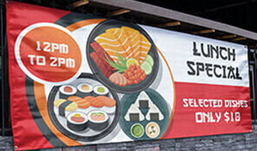 Waterproof Giant Banner helps draw bigger audience and showing yummy food. They are great for advertising (in this case, lunch specials)